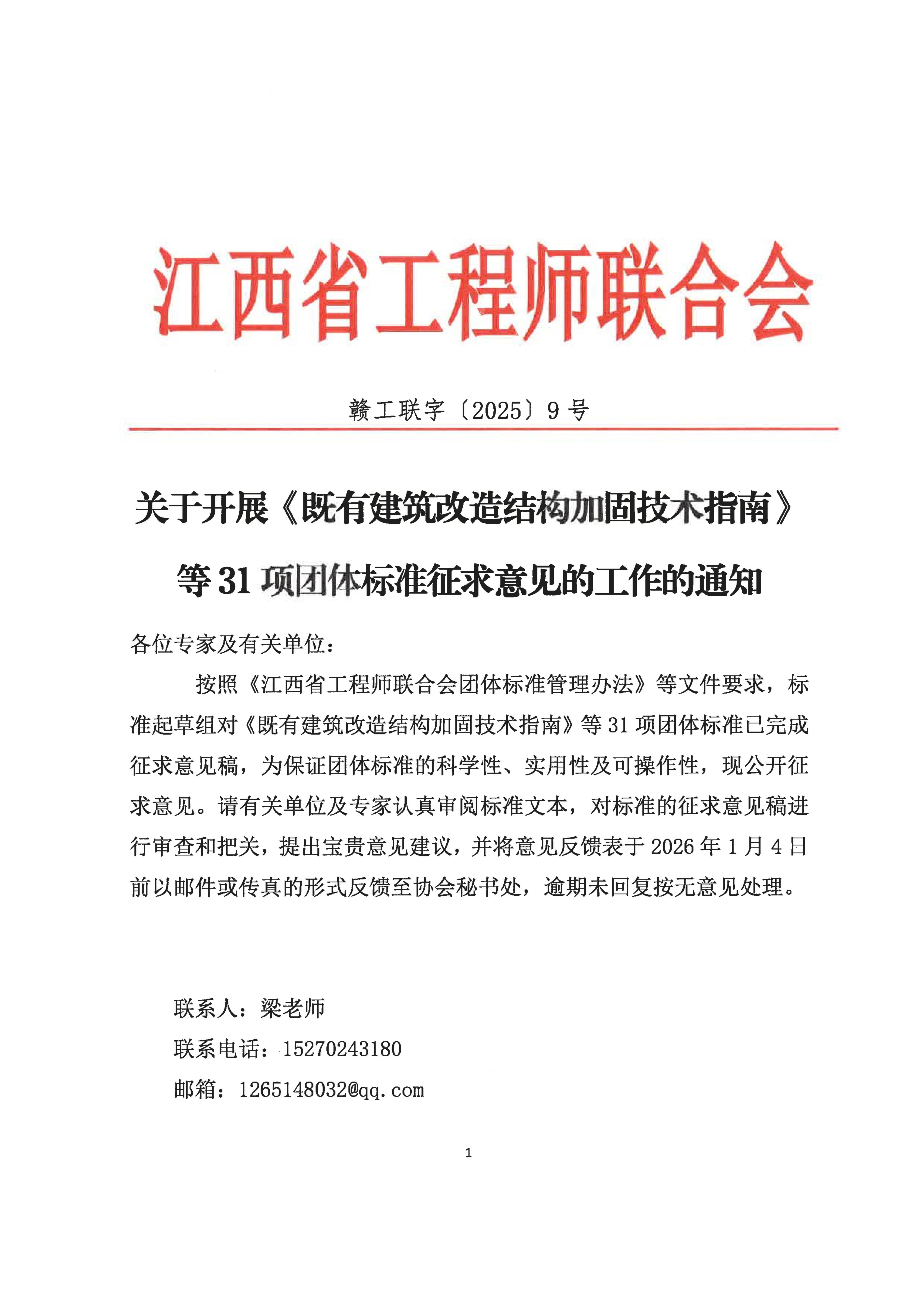 关于开展《既有建筑改造结构加固技术指南》 等31项团体标准征求意见的工作的通知