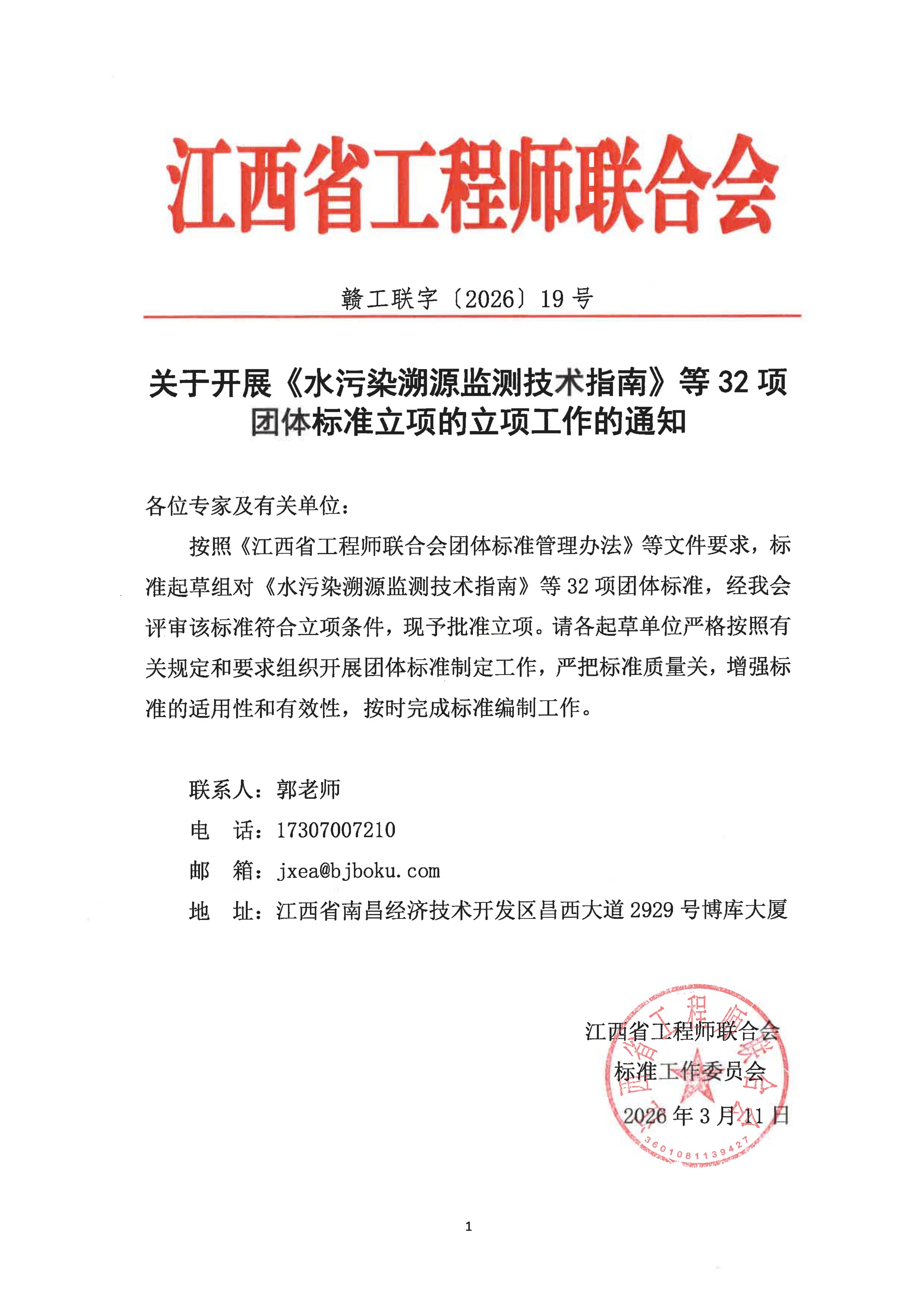 关于开展《水污染溯源监测技术指南》等32项团体标准立项的立项工作的通知