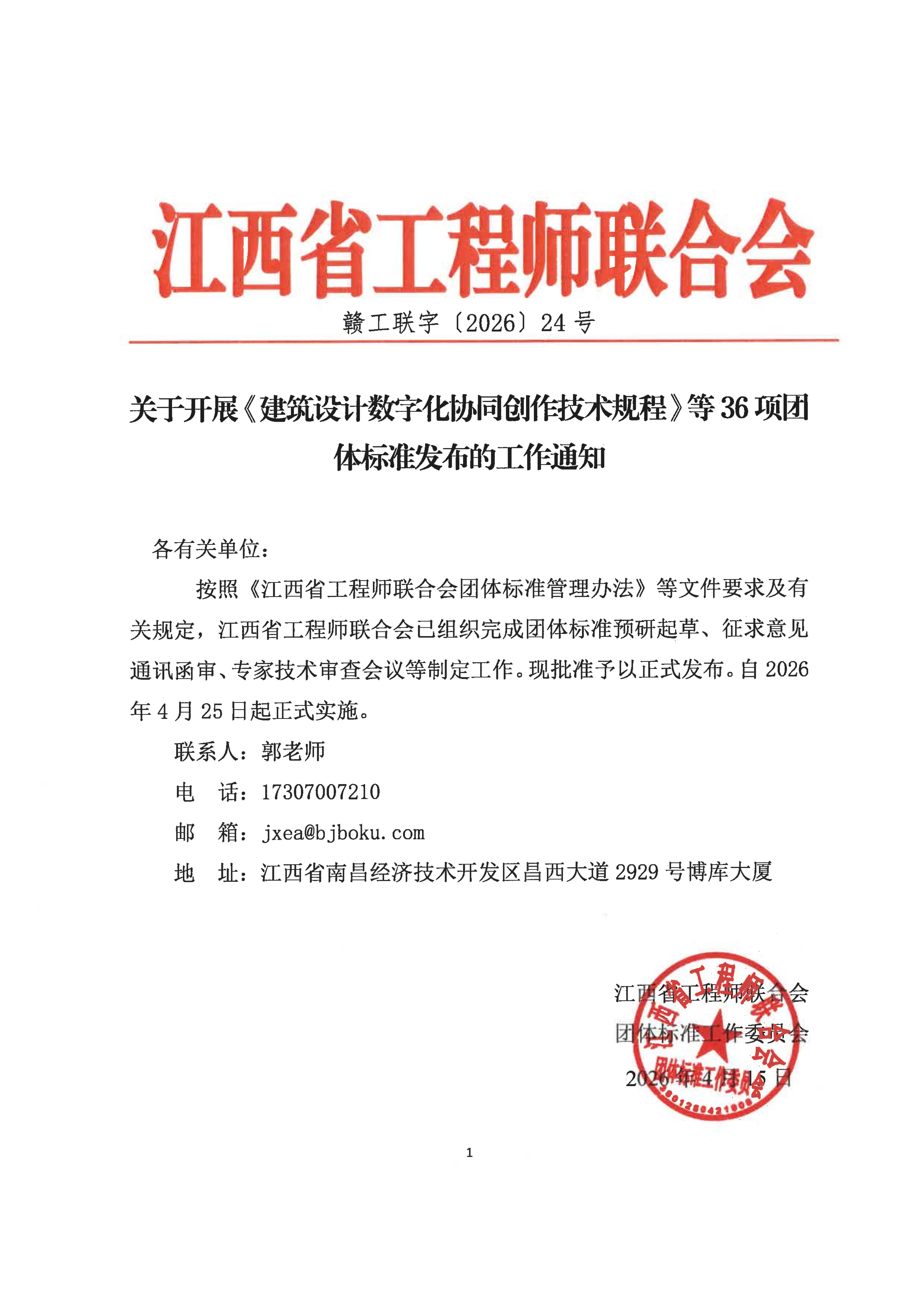 关于开展《建筑设计数字化协同创作技术规程》等36项团体标准发布的工作通知